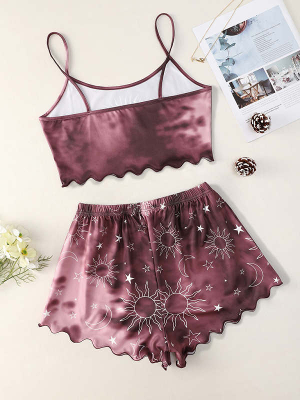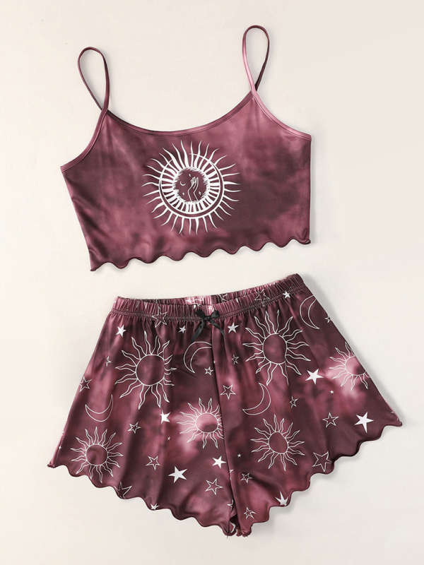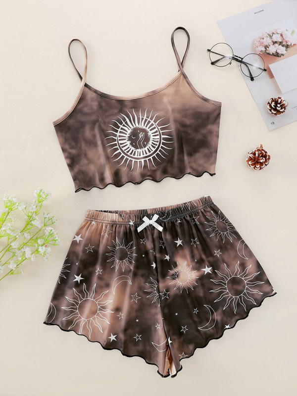 Women’s tie-dye Xingyue print camisole top+shorts loungewear set, made of soft and comfortable fabric, stylish in style. Can be worn for everyday, date and more. Washing method can be machine wash or hand wash. Fabric resists wrinkling and pilling. The size is measured by hand, and it is normal for there to be an error of 1-3cm.