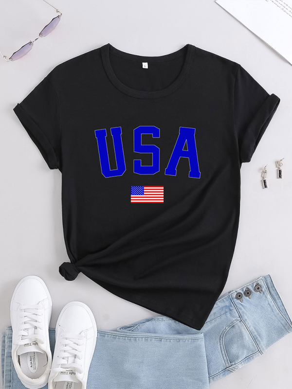 Design: Featuring a festive Independence Day print, this t-shirt adds a patriotic touch to your wardrobe. The round neck and short sleeves offer a classic and casual look.