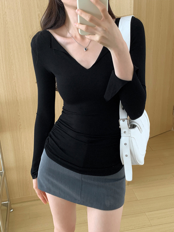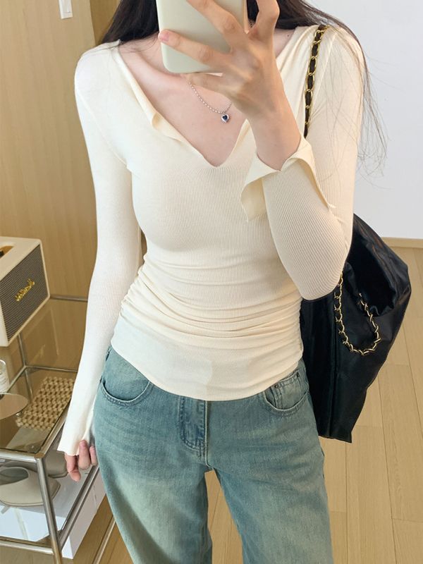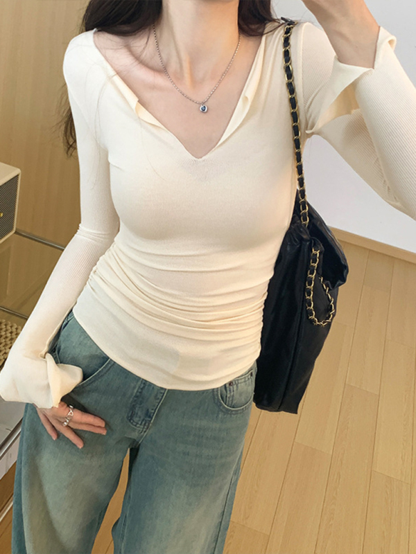 Women’s V-neck bell sleeve slim knitted top, Knitted fabric, large elasticity, comfortable, suitable for base layering, leisure, work, etc.,Please use the size guide shown in our pictures. Before choosing a size, please read each element of the size guide carefully. Unique design, classic style, casual and comfortable. It is suitable for outing and leisure. The size is measured manually, and the error of 1-3cm is normal.