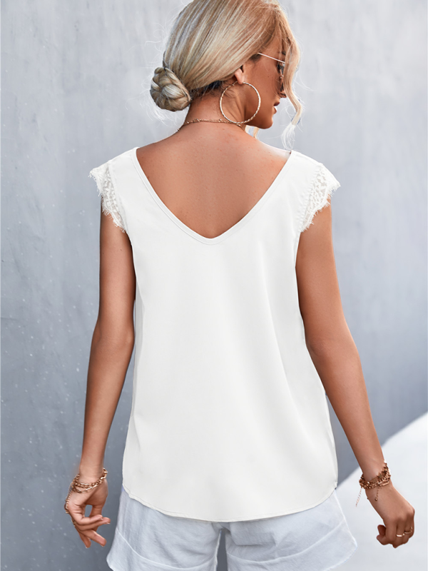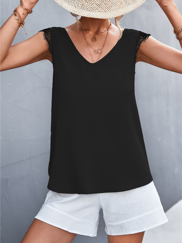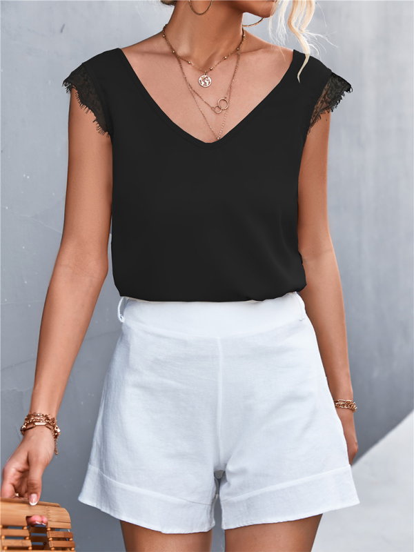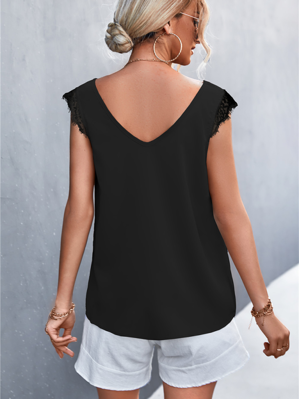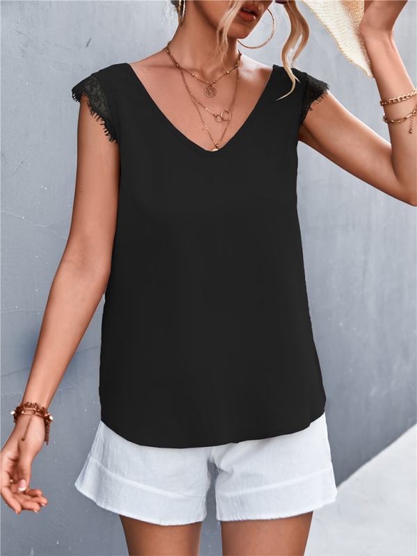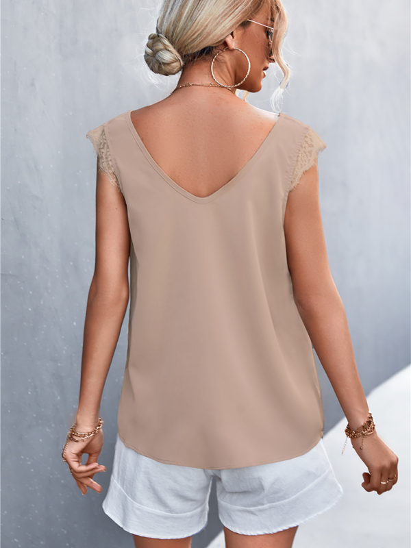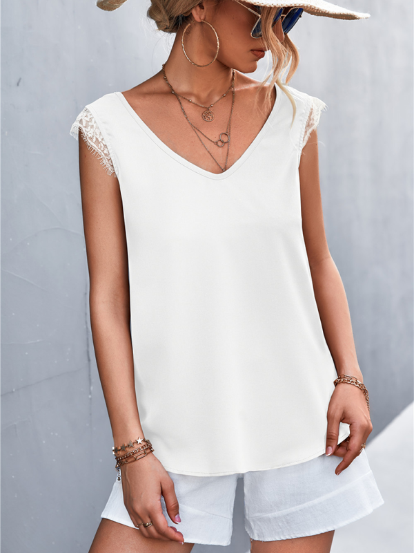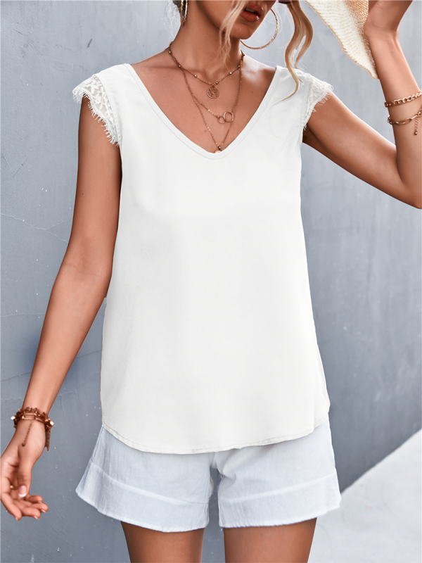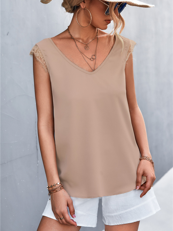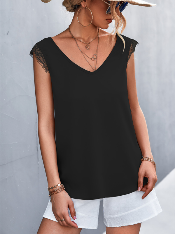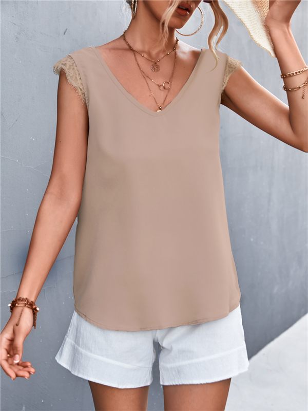 Women’s V-neck Lace Stitching Casual Sleeveless Tank Top
