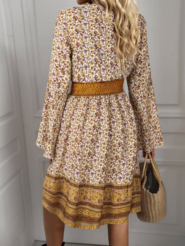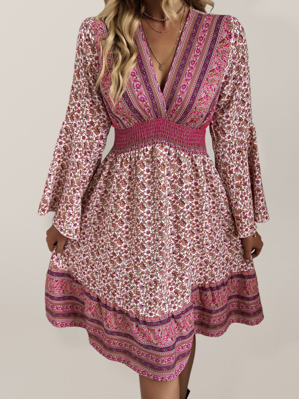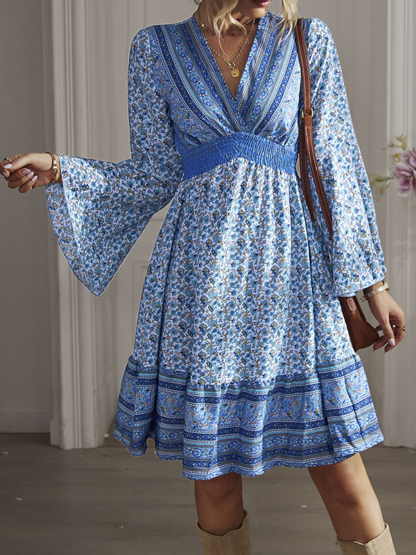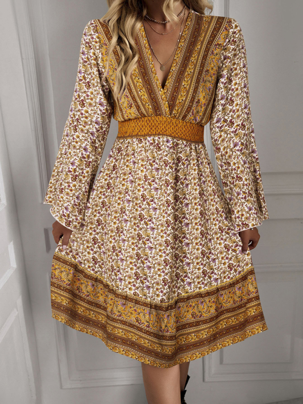 Women’s V Neck Long Sleeve Bohemian Long Sleeve Dress