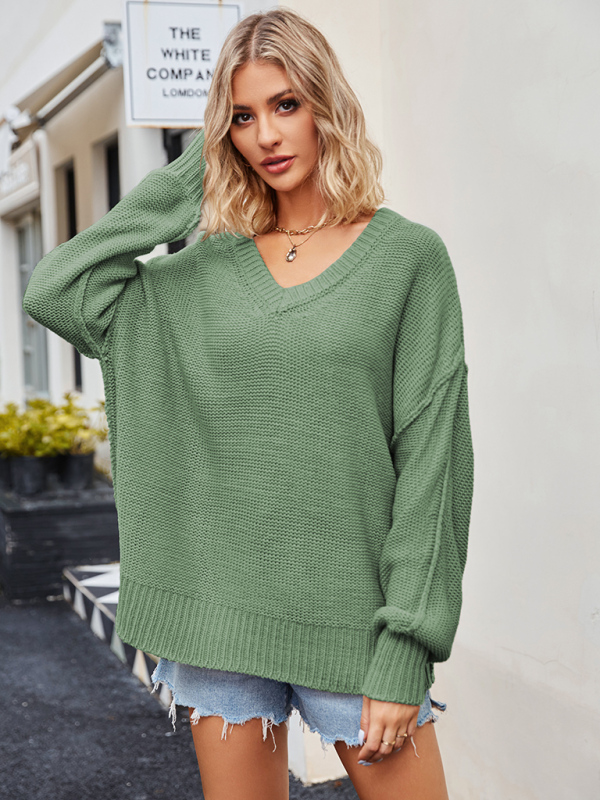 Women’s V-neck loose pullover sweater. Please use the size guide shown in our pictures. Before choosing a size, please read each element of the size guide carefully. Unique design, classic style, casual and comfortable. It is suitable for outing and leisure. The size is measured manually, and the error of 1-3cm is normal.