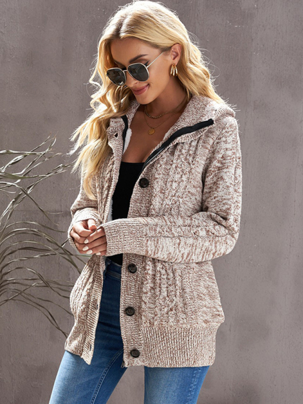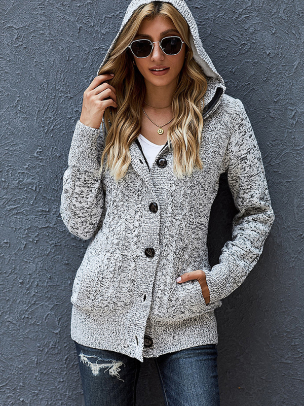 Women’s warm casual hooded long-sleeved cardigan knitted