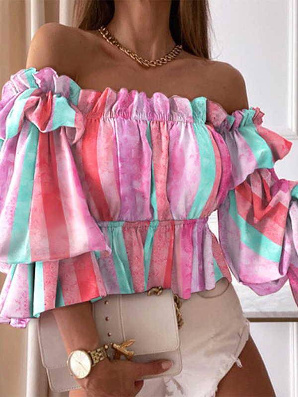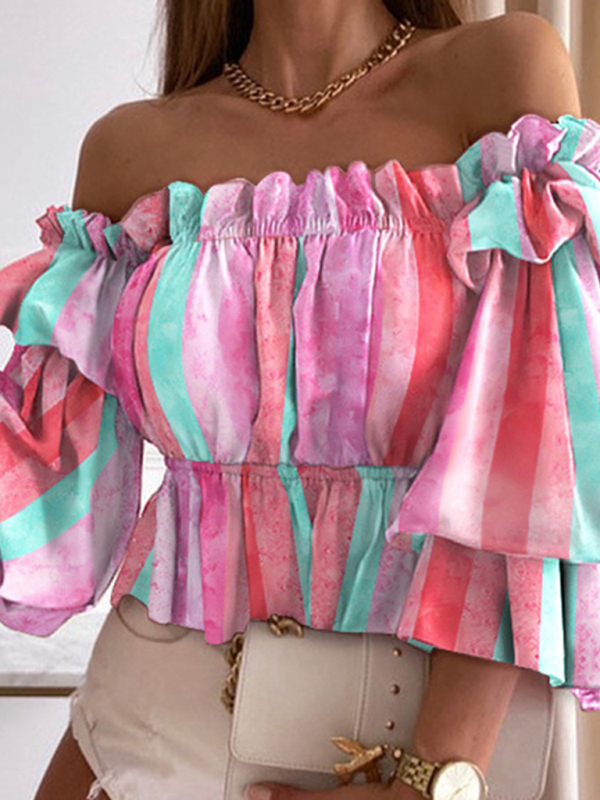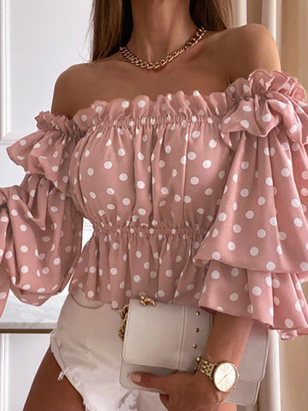 Women’s Woven Off Shoulder Cake Sleeve Top