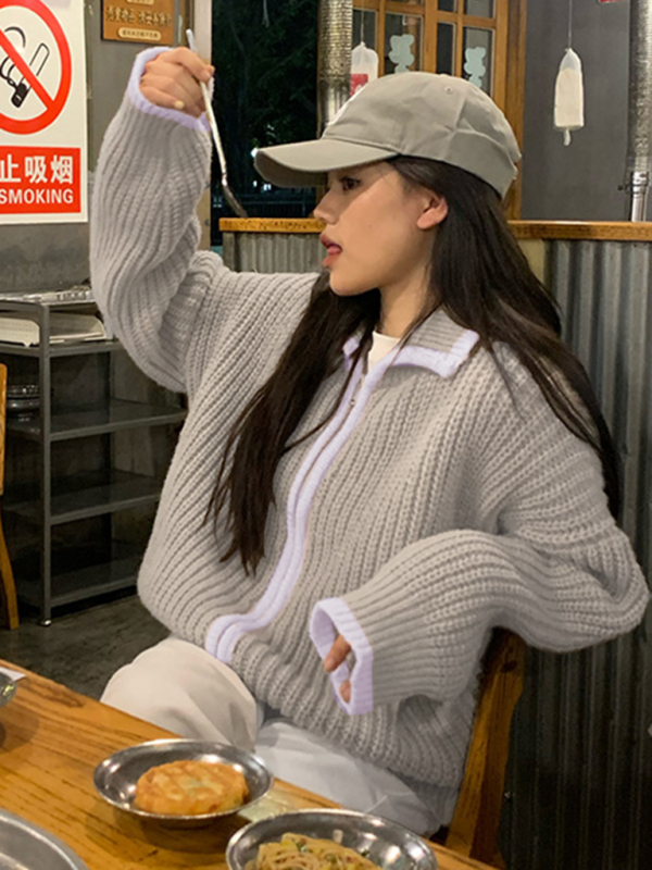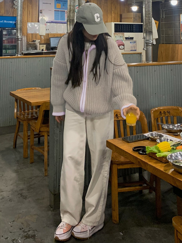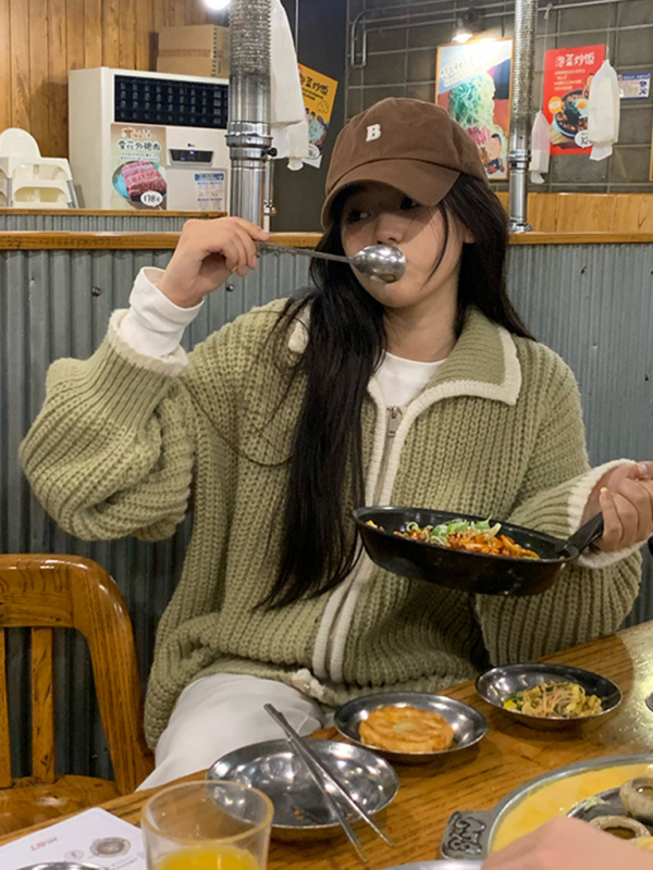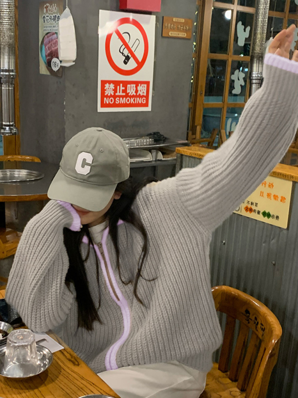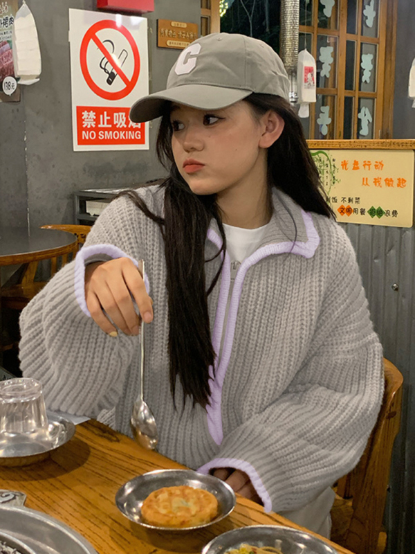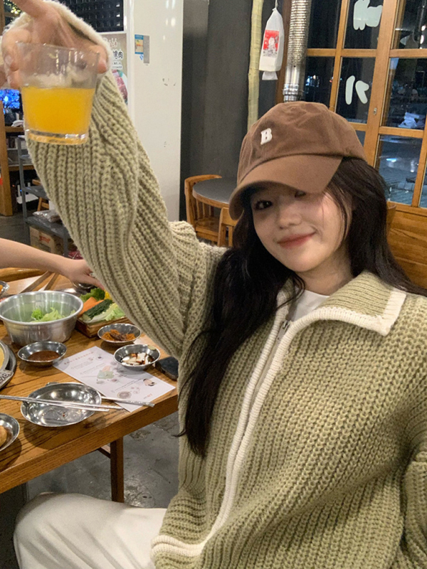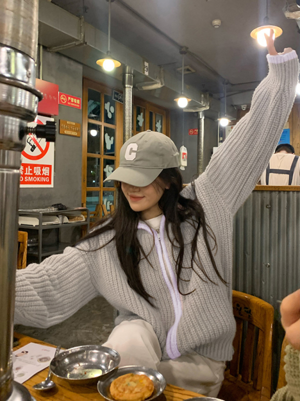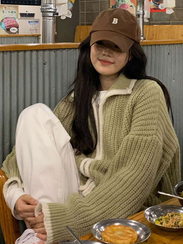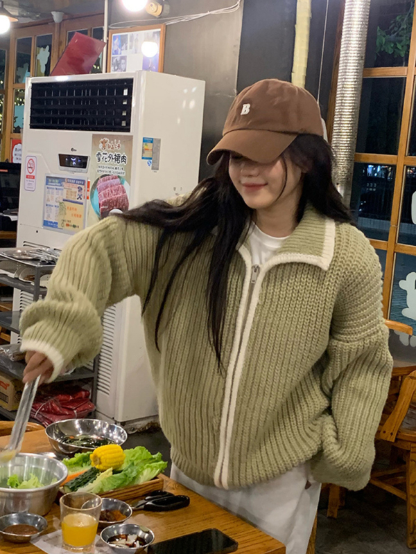 women’s zipper lapel loose knit sweater. Please use the size guide shown in our pictures. Before choosing a size, please read each element of the size guide carefully. Unique design, classic style, casual and comfortable. It is suitable for outing and leisure. The size is measured manually, and the error of 1-3cm is normal.