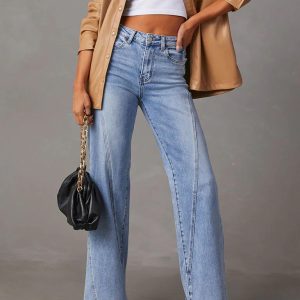 New style comfortable casual loose spliced wide leg women’s jeans