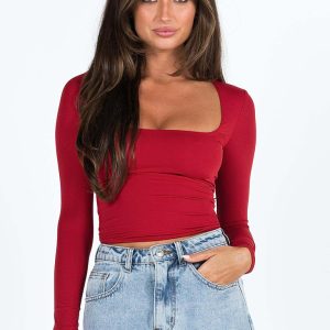 New women’s long-sleeved solid color navel-baring square neck T-shirt top