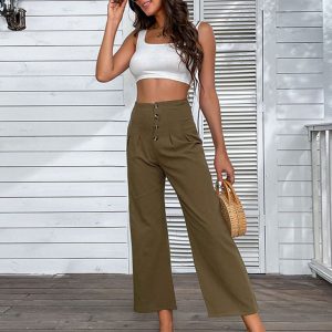 New women’s mid-waist straight pants, loose sports solid color pocket casual trousers