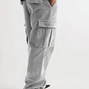 Corduroy multi-pocket straight trousers men’s sweeping pants men’s casual loose trousers
