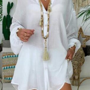 Cotton printed beach blouse gown holiday sun protection shirt bikini blouse holiday dress