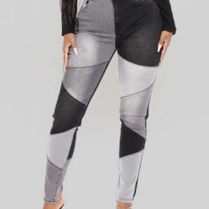 Women’s Two-color Stitching Street Wash High Waist Skinny Jeans