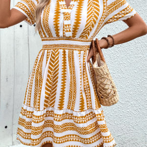 Women’s V Neck Bohemian V Neck Short Sleeve Printed Dress