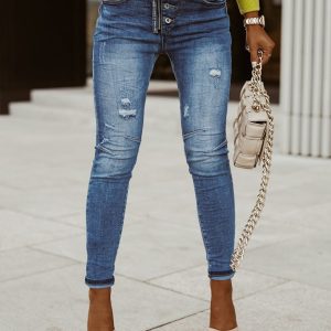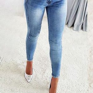 Women’s Washed Frayed Tassel Slim High Elastic Skinny Jeans