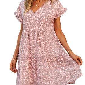 Women’s Woven V-neck Large Swing A-line Short Sleeve Dress