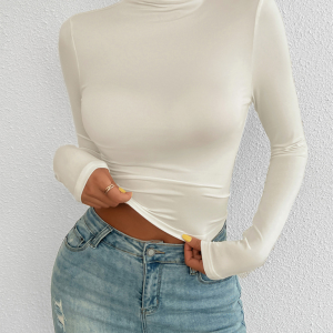 Women’s Y2K Slim Fit Solid Color Knitted Bottom Long Sleeve Top