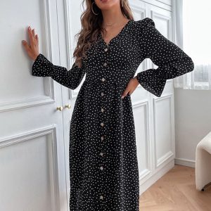 Autumn/Winter Solid Color Round Neck Long Sleeve Sexy Sweater Dress
