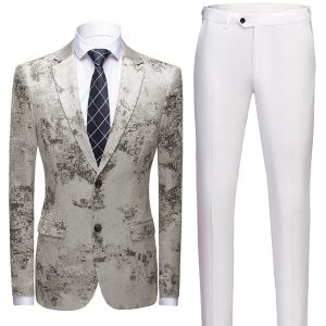 Men’s Casual Lapel Woven Knit Blazer Suit