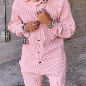 Men’s Casual Loose Long Sleeve Corduroy Pants Suit