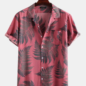 Men’s Casual Loose Beach Wear Maple Leaf Print Short Sleeve Shirt