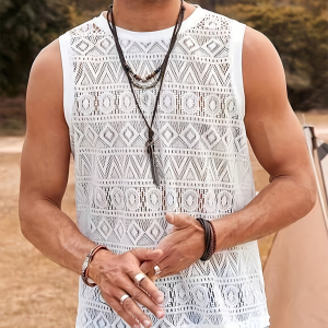 Men’s Casual Hollow Sexy Vest Outdoor Holiday Beach Mesh Lace Breathable Vest