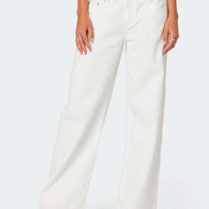 Bow Embroidered Fashion Casual Non-Stretch Straight Trousers