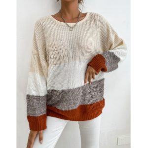 Bottoming Pullover Crew Neck Contrast Knit Sweater