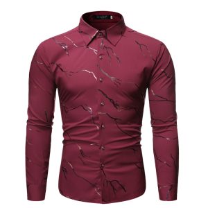 Men’s Stand Collar Line Foil Print Long Sleeve Shirt