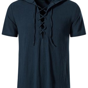 Men’s Spring/Summer Fashion Solid Color Hooded Short Sleeve T-Shirt Top